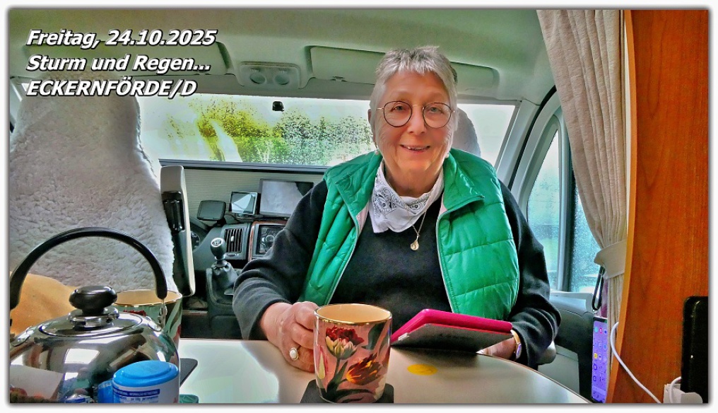 Von der Wetterfront gibt es leider nichts Gutes zu berichten. Ab dem frühen Nachmittag sollte der angekündigte Sturm mit kräftigem Regen eintreffen. Die Fahrt von TRAVEMÜNDE/D nach ECKERNFÖRDE/D verlief zwar völlig unspektakulär, sogar das Wetter zeigte sich noch moderat. Doch bei unserer Ankunft auf dem sehr guten Stellplatz änderte sich das schlagartig. Das Unwetter war da – und ja, der Wetterbericht hatte nicht gelogen.
