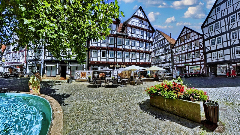 Weiter nach Melsungen. Eine Fachwerkperle an der Fulda, klein, aber voller Charme. Das Rathaus von 1662 thront über dem Marktplatz, die Gassen atmen Geschichte. Auf der alten Brücke schliffen einst Holzfäller – die „Bartenwetzer“ – ihre Äxte. Ein Brauch, der der Stadt ihren Spitznamen gab.