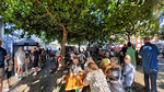 Und dann: Feierabendmarkt. Rund um das historische Rathaus reihen sich Stände aneinander, es duftet nach Bratwurst, Pizza, Döner. Die berühmte „Aale Wurscht“ darf nicht fehlen. Dazu Bier und Wein – offiziell gegen die 34 Grad, inoffiziell für die Gemütlichkeit. Livemusik spielt, die Stadt feiert, und mittendrin wir: dankbar, dabei zu sein.