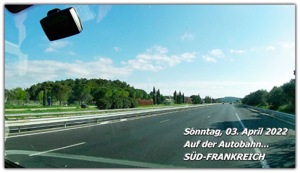 Der Himmel meinte es gut mit uns. Die Sonne strahlte, wie man es in Süd-Frankreich auch erwarten kann. Nur der kalte Nordwind blieb uns erhalten. Im Wohnmobil auf der Fahrt allerdings kein so wichtiges Problem.