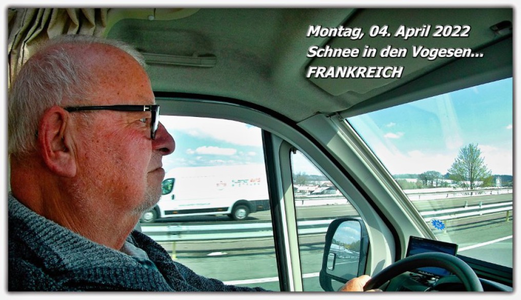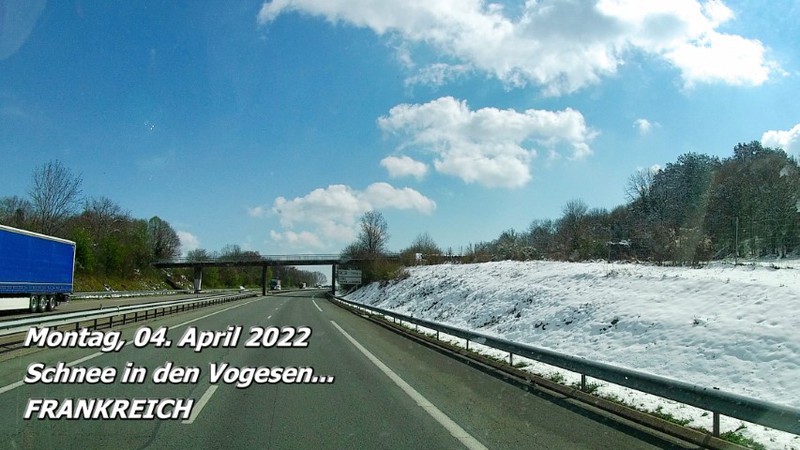 Uns sind zwei Dinge aufgefallen. 1. Es gab recht wenig Verkehr, das haben wir an einem Montag ganz anders erwartet. 2. In den VOGESEN lag abseits der Straßen noch richtig viel Schnee. Unsere Fahrt tangierte dieser Umstand aber nicht. Beim Tanken konnte man den kalten Hauch deutlich spüren. Ansonsten war es eine sonnige Fahrt.