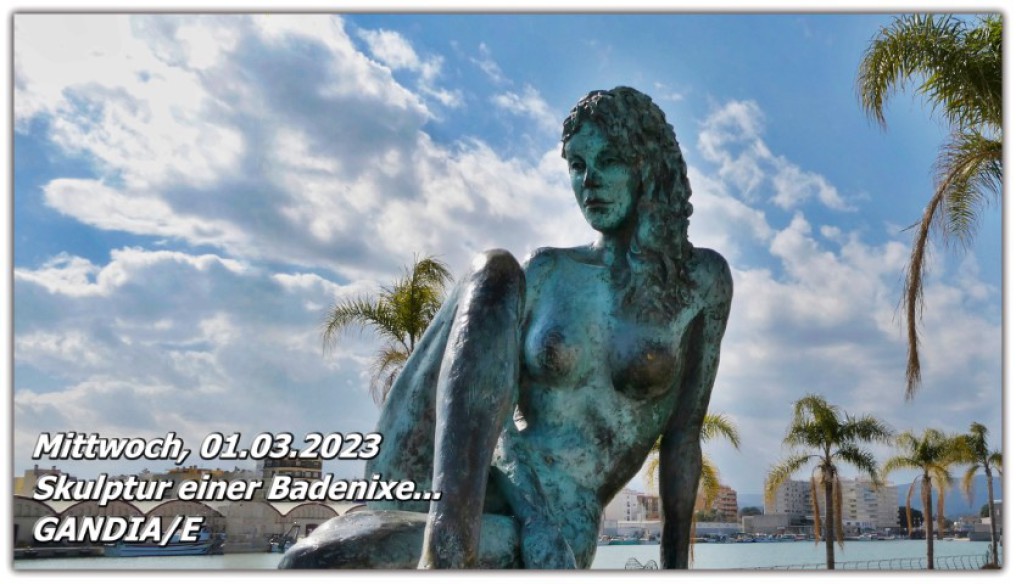 Auf dem Rückweg an der Hafenpromenade begegnet uns erneut die Skulptur einer Badenixe. Diesmal aber in perfektem Licht und ohne das Mobiliar eines Restaurants drumherum.