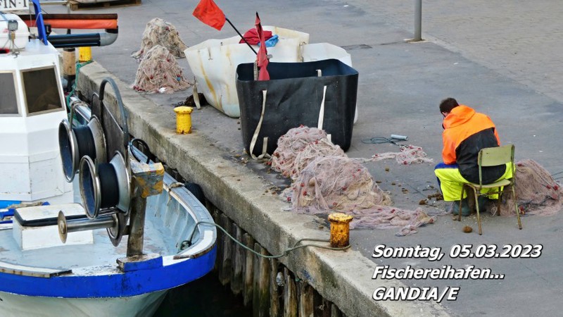 Immer wieder zieht es uns in den Hafen von GANDIA/E, gerne auch dorthin, wo die Fischereiflotte ihre Anlegestellen hat. Meistens gibt es etwas zu sehen, was mit dem Arbeitsalltag der Fischer zu tun hat.