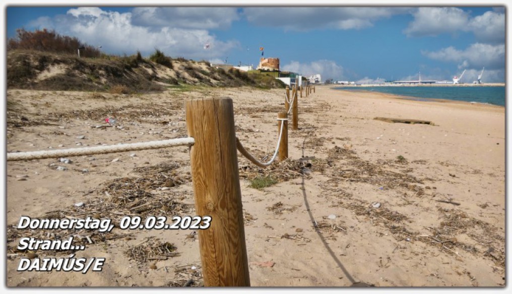 Sicherlich wird uns die Temperaturumstellung noch zu schaffen machen. Die Sonne und das Klima hier in GANDIA/E haben uns verwöhnt. Fast sommerlich haben wir das Wetter den Winter über erlebt. Ein weiteres Foto vom endlosen Strand in DAIMÚS/E soll dies belegen.