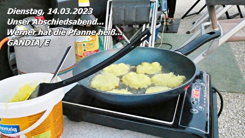 Werner hatte die Pfanne heiß, aus den Wohnmobilen kamen weitere Zutaten und so wurde es ein rundum toller Abschied für diese Wintersaison 2022/23.