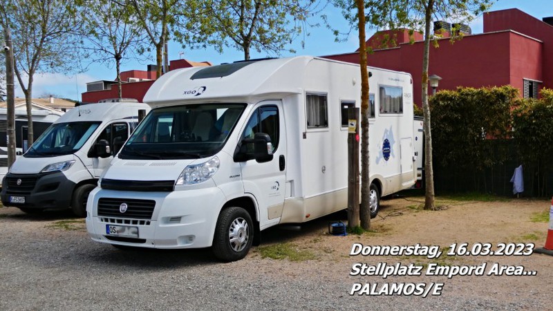 Kurz vor 14:00 Uhr standen wir auf dem Stellplatz „Empord Area“ in PALAMOS/E. Bereits gestern Abend haben wir telefonisch reserviert. Das war eine gute Idee, denn der Platz war schon fast belegt. Alles richtig gemacht, wie sich herausstellte.