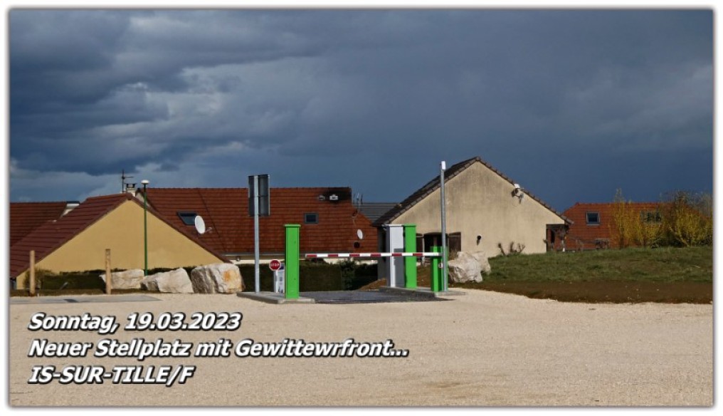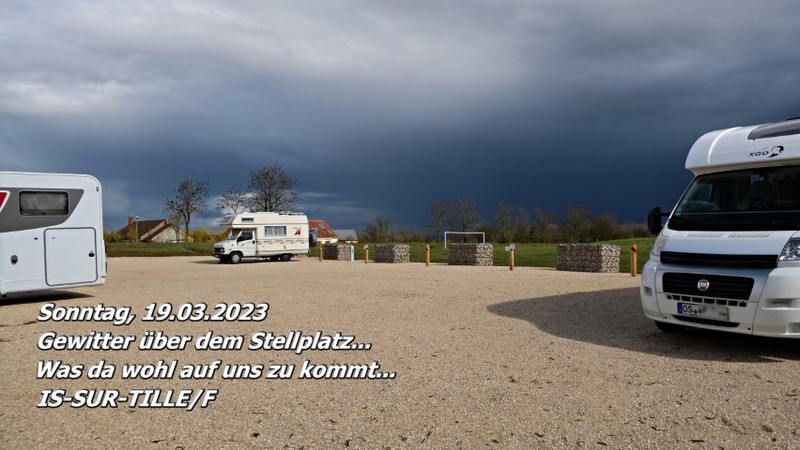 IS-SUR-TILLE/E ist bekannt für seine malerische Altstadt, die von alten Fachwerkhäusern und engen Gassen geprägt sein soll. Leider war es uns nicht möglich, die Altstadt zu besichtigen, da ein heftiges Gewitter mit starkem Regen aufzog.
