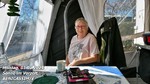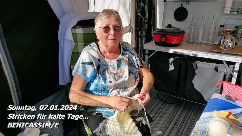 Nach Gymnastik und Lauftraining ging Anne wieder ihrer Lieblingsbeschäftigung nach. Sie strickt fleißig für „kalte Tage“.