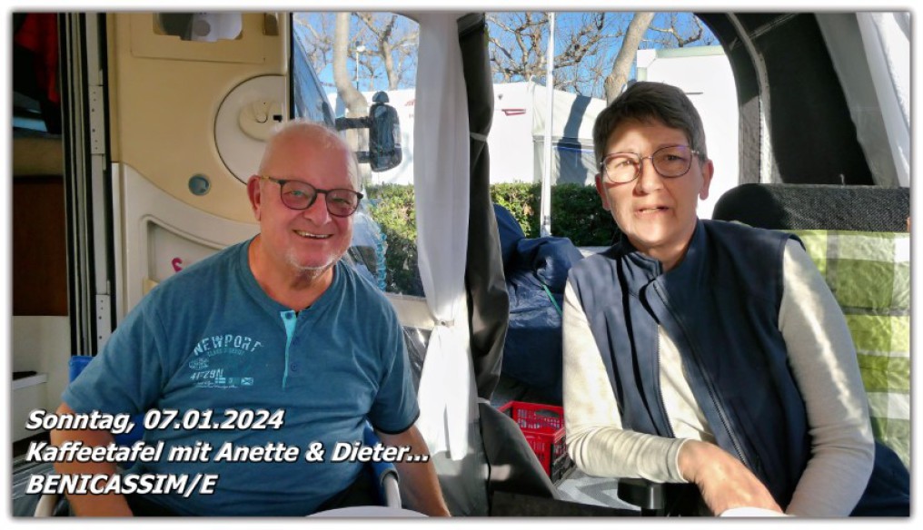Anette & Dieter, langjährige Freunde, sind auf dem Campingplatz eingetroffen. Zuletzt haben wir die beiden im letzten Winter in GANDIA/E gesehen. Ziemlich genau ein Jahr ist seit diesem Treffen vergangen. Klar, dass es viel zu erzählen gab.