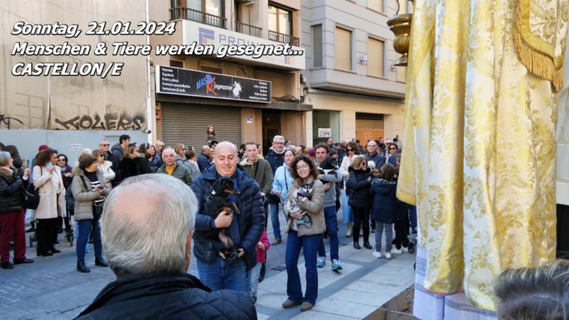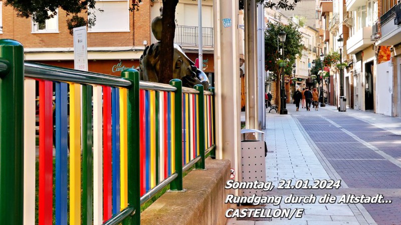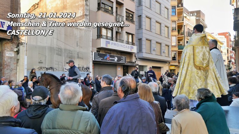 Mit dem Segen von ganz oben, dem Segen der Kirche für Mensch und Tier, der völlig unerwartet auf den Chronisten niederprasselte, ging es weiter in die Altstadt von CASTELLON/E.