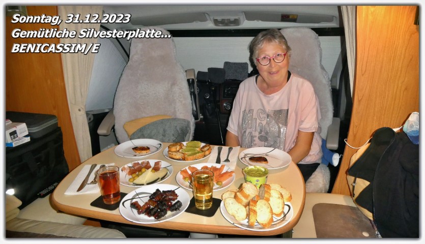 Den gestrigen Silvesterabend haben wir ruhig und gemütlich im Wohnmobil verbracht. Anne hat einen kleinen Teller mit Leckereien vorbereitet, einige unserer Kinder und Enkel haben sich per Telefon und WhatsApp gemeldet und den Rest der Silvesterunterhaltung hat der Fernseher übernommen.