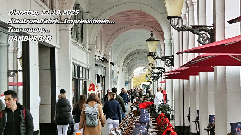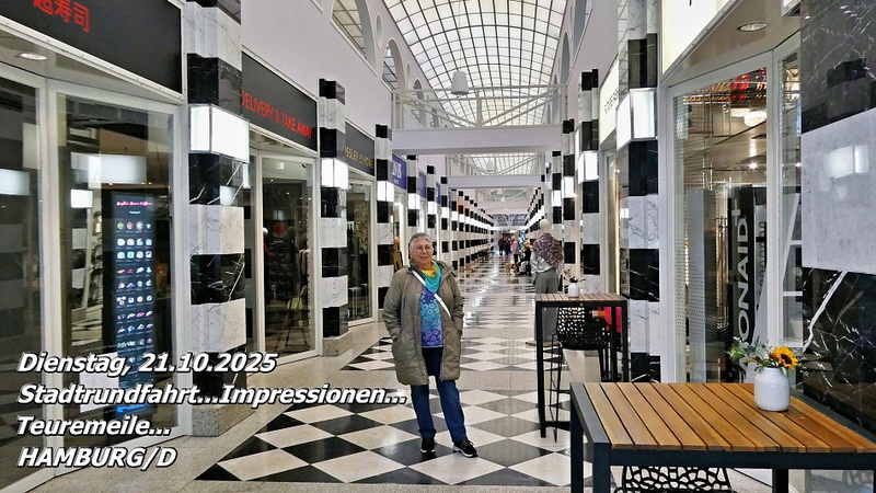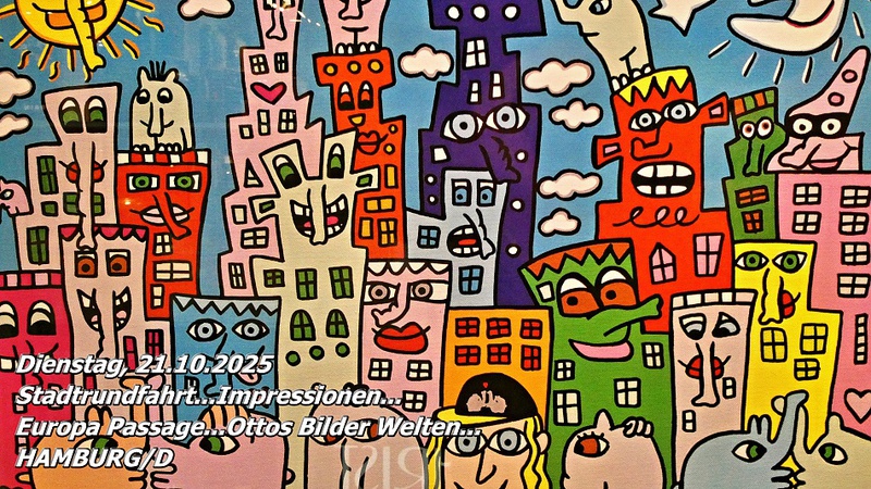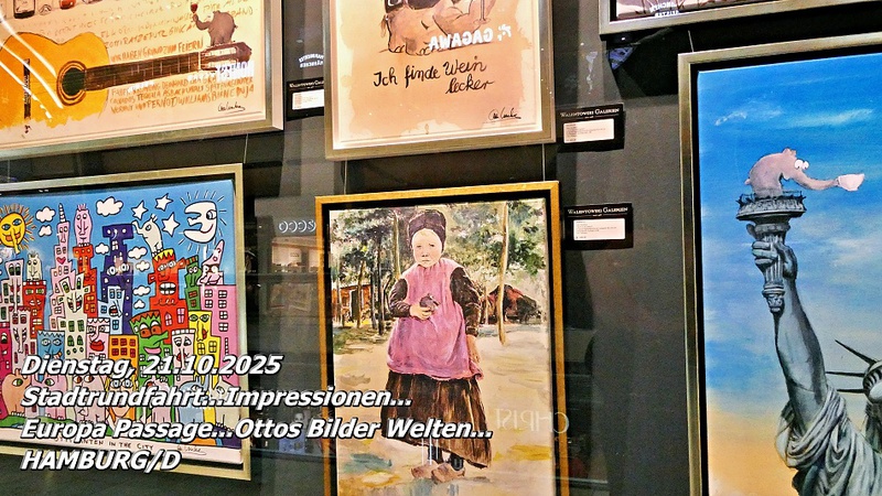 Wir ließen uns die Laune nicht verderben und stiegen kurzerhand in den nächsten Stadtrundfahrt-Bus. Fast alle Sehenswürdigkeiten wurden uns während der Fahrt erläutert. Am berühmten Hamburger Rathaus stiegen wir aus und schlenderten über die sogenannte „Teuermeile“, wo wir die exklusivsten Geschäfte bestaunten. Über den Jungfernstieg an der Binnenalster führte unser Weg weiter in die Shoppingmall „Europa Passage“. Neben den üblichen Kettenläden entdeckten wir dort auch „Ottos Bilderwelten“ mit Originalwerken des bekannten Komikers.