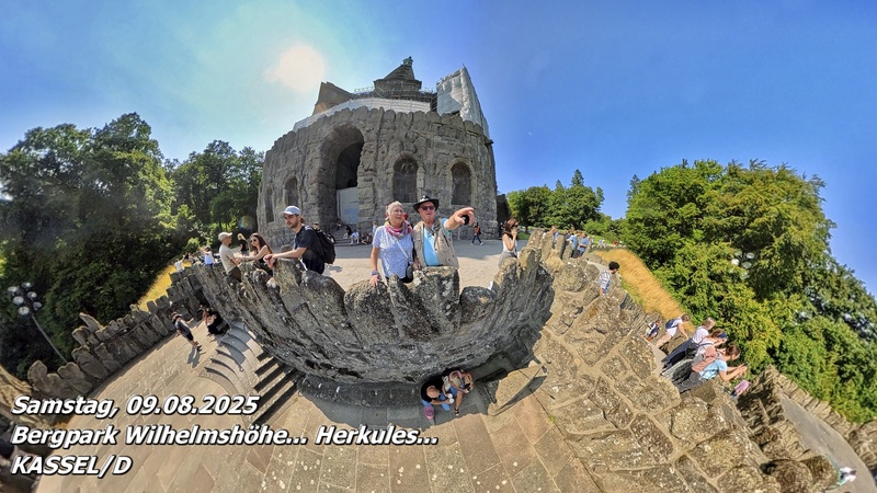 Die Stadtrundfahrt begann mit einer großen Überraschung: Wir wollten den Fahrpreis von 25,00 € pro Person bezahlen und hofften auf einen kleinen Rabatt mit der Touristenkarte vom Campingplatz. Der Fahrer lehnte unsere Kreditkarte jedoch ab – mit der Begründung, dass mit der Touristenkarte bereits alles beglichen sei. Kompliment, so etwas haben wir auch noch nie erlebt! Umso mehr konnten wir die Fahrt bis hinauf zum Bergpark Wilhelmshöhe und zum Herkules-Denkmal genießen.