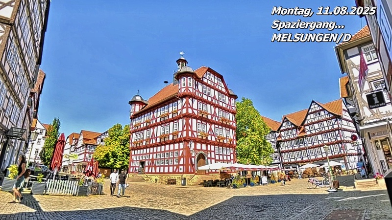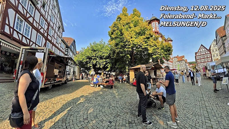 In den frühen Abendstunden findet in Melsungen (D) ein kleiner Markt mit Musik rund um das historische Rathaus statt. Das möchten wir gern erleben – und morgen darüber berichten.