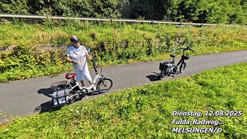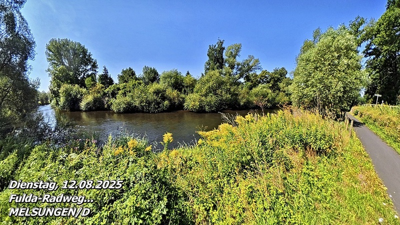 Der Wetterbericht hat für heute und die nächsten Tage Temperaturen von bis zu 37 °C angekündigt. Bevor diese Hitze einsetzt, wollen wir unbedingt einmal ein Stück auf dem Fulda-Radweg fahren. Also: rauf auf die Räder und los, bevor die Sonne ihre volle Kraft entfaltet.
